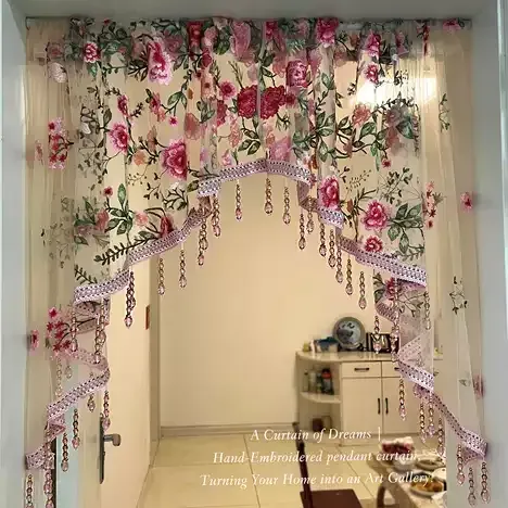 No Drill 2 Panels Embroidered Lace Door Curtain with Adjustable Telescopic Rod 60 to 110cm